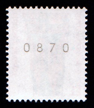 Ab Oktober 1995 wurden die rückseitigen Zählnummern bei Rollenmarken nicht mehr mittels mechanischer Druckwerke waagerecht aufgedruckt (Typ I), sondern mit Tintenstrahldruckern senkrecht aufgespritzt (Typ II). Später ist für kurze Zeit auch eine schwarze (b) statt der üblichen grauen Tinte (a) zum Einsatz gekommen.