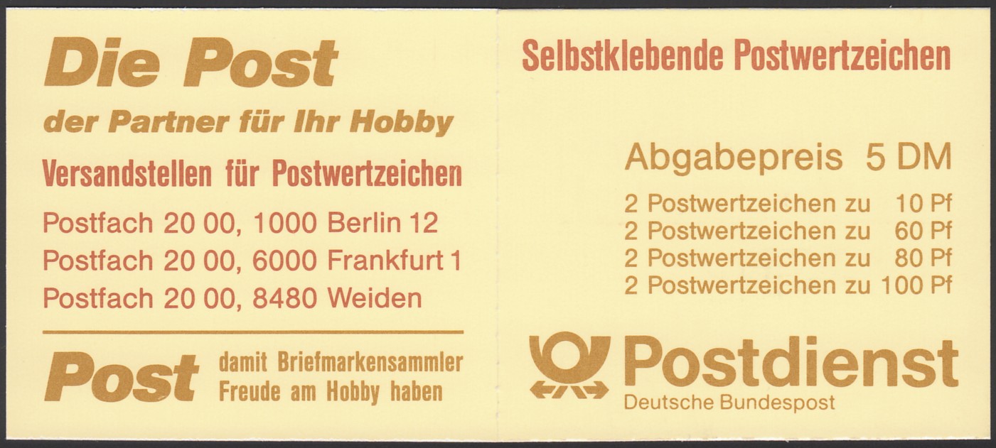 1991 erschien das erste deutsche Markenheftchen mit selbstklebenden Postwertzeichen (MH 27). Aufgrund gravierender Mängel, vor allem bei der Alterungsbeständigkeit, muss es jedoch als gescheiteter Anfangsversuch gewertet werden.