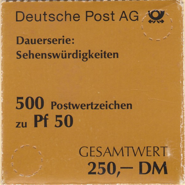 In dem überdurchschnittlich langen Ausgabezeitraum der Dauerserie „Sehenswürdigkeiten“ vom November 1987 bis Februar 2004 – also über 16 Jahre – wurden insgesamt 64 verschiedene Dauerserienwerte im Bundesgebiet ausgegeben.