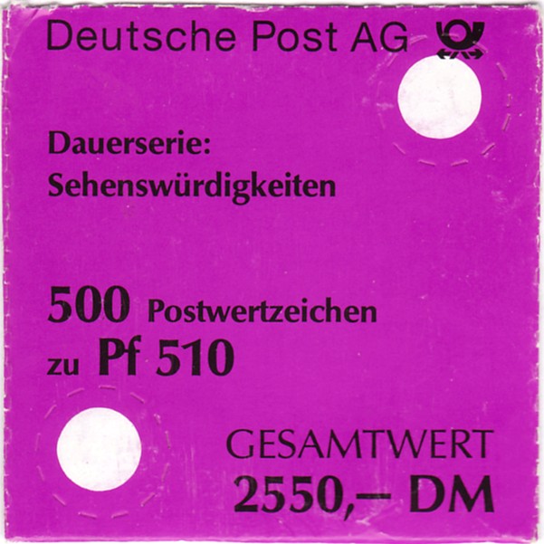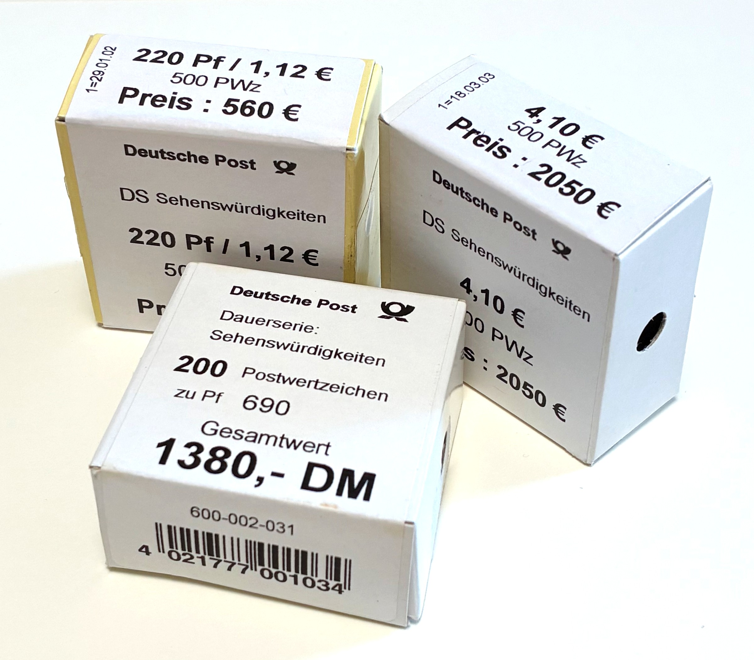 Im Jahr 1998 ist die Verpackung von Rollenmarken erneut verändert worden. Fortan wurden unbedruckte weiße Schachteln mit aufgeklebtem Etikett verwendet. Sie durchlebten die Währungsumstellung von D-Mark/Pfennig auf Euro/Cent.