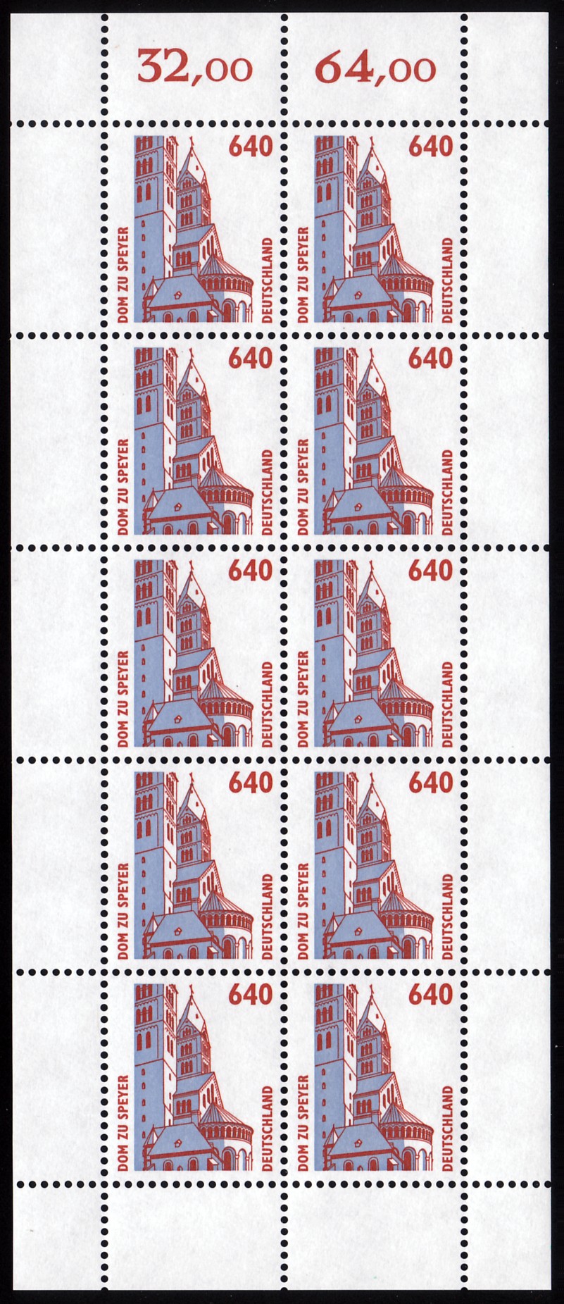 Erster Dauerserienwert in Zehnerbogen mit der Landesbezeichnung „Deutschland“, Ausgabetag 10. August 1995