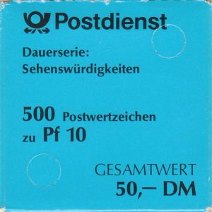 In dem überdurchschnittlich langen Ausgabezeitraum der Dauerserie "Sehenswürdigkeiten" vom November 1987 bis Februar 2004 - also über 16 Jahre - wurden insgesamt 64 verschiedene Dauerserienwerte im Bundesgebiet ausgegeben. Die ersten vier Dauerserienwerte vom 6. November 1987 - Ausgabe "Deutsche Bundespost" Parallel hierzu sind bildgleiche Postwertzeichen mit dem Aufdruck "Deutsche Bundespost Berlin" erschienen. Aufgrund der am …